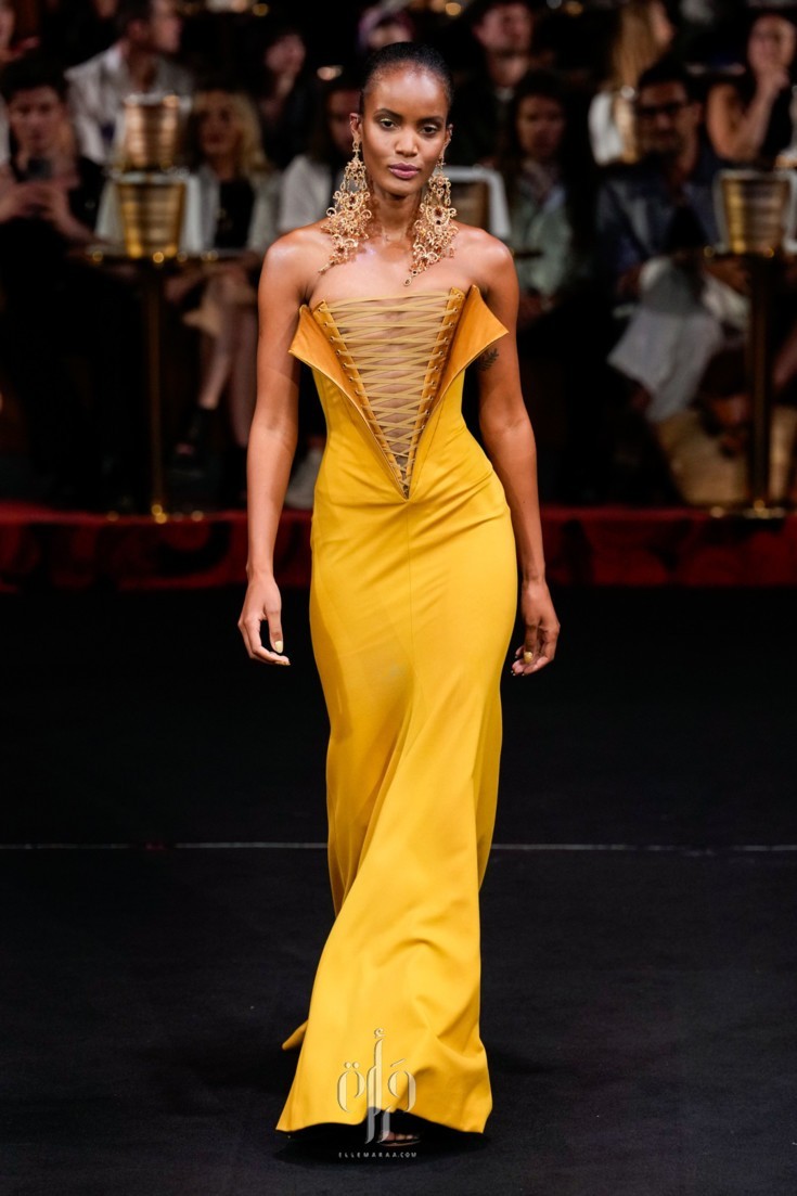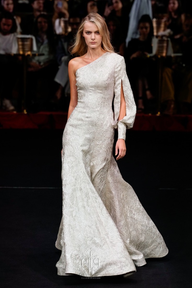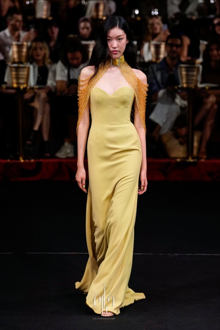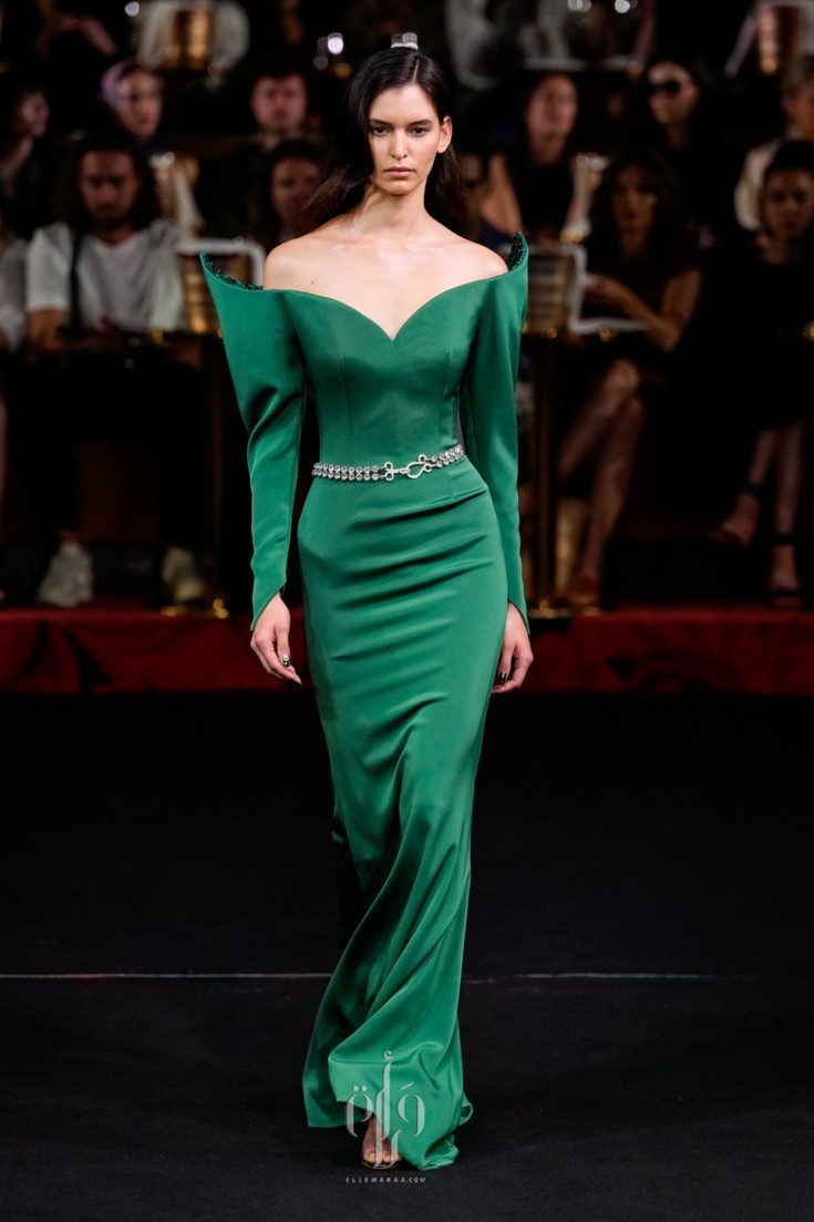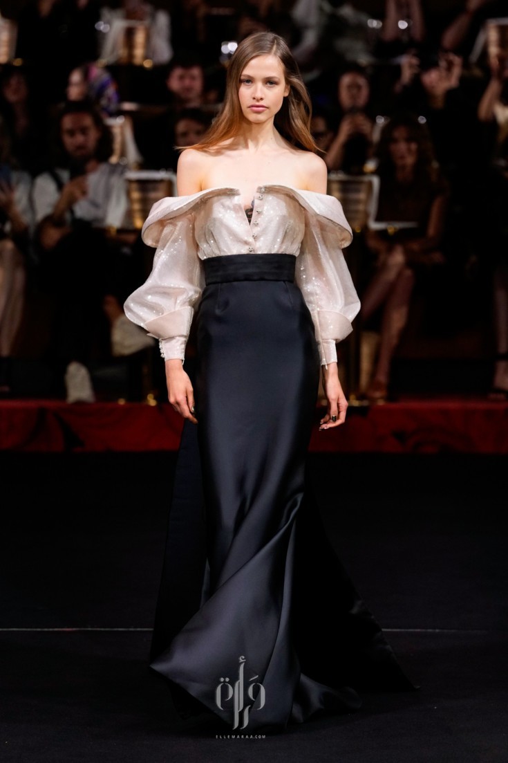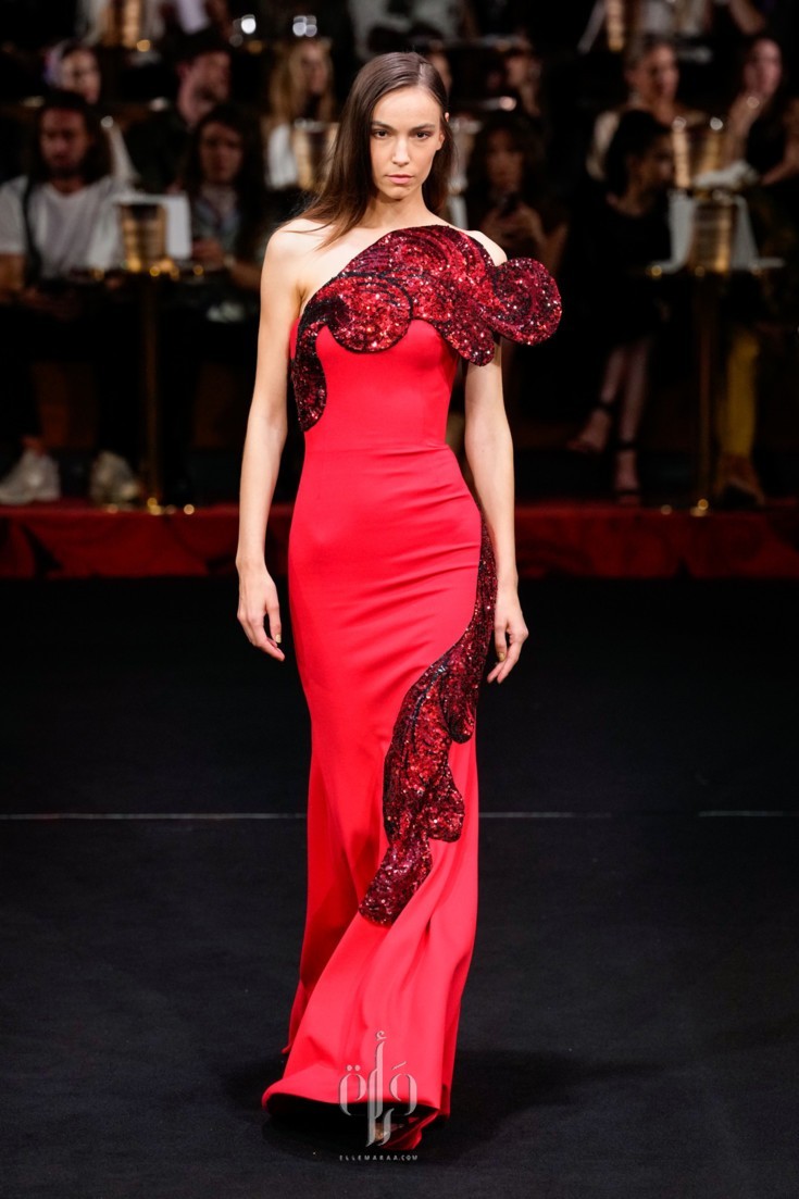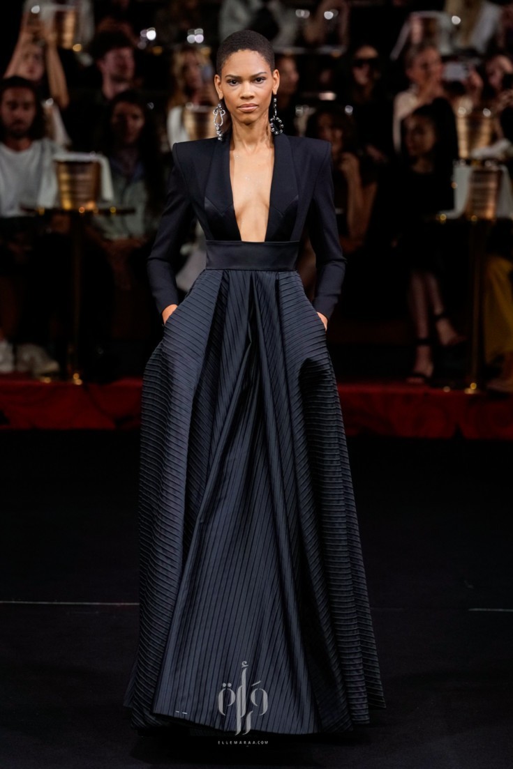ضمّت المجموعة خيارات متنوّعة من الفساتين الطويلة، التي تفرّد كلّ منها بمقوّمات، أبرزها القصّة واللون والأقمشة والتفاصيل التي زيّنته. وقد قدّم المصمّم تصاميم كلاسيكيّة من الياقات التي استوحى بعضها من القمصان الرسميّة، أو من بدلة التوكسيدو، وتلاعب أيضاً بقصّات الأكتاف التي أتت عالية ومبالَغ بحجمها، ومنها تميّزت بزواياها الحادّة وأخرى عكست جمال عقدة الفراشة.