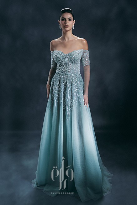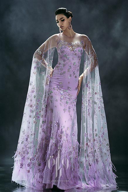 كما استخدم بالتطريز تدرّجات لونيّة متنوّعة و خلّابة، بين «البيج» و«Royal Blue» و«الموف» ولون الـ«ستيفاني» والأخضر العشبي، و«الفوشيا» والـ«Blue Gray».