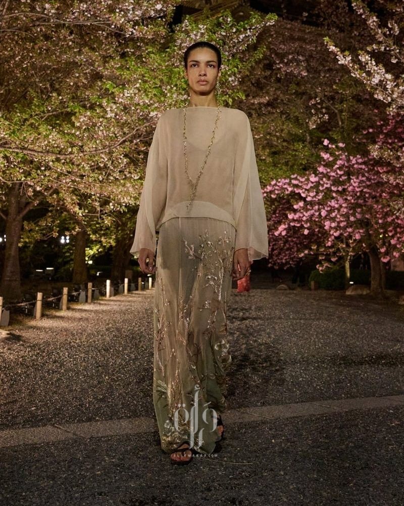 المجموعة صمّمتها Maria Grazia Chiuri بأسلوب يعكس التوازن بين الراحة والأنوثة، حيث ظهرت القصّات الواسعة والأقمشة الحريرية بتطريزات مستوحاة من الطبيعة اليابانية مثل أزهار الكرز وأمواج البحر.