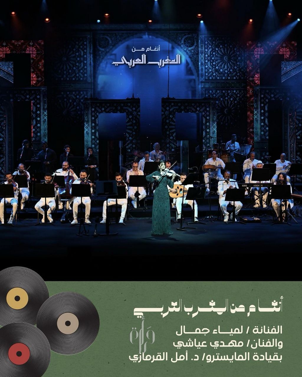 الأمسية التي جاءت ضمن فعاليات “مهرجان الموسيقى الدولي” وتحت إشراف المجلس الوطني للثقافة والفنون، تميّزت بالتنوع والاحتراف، فقد تضمّن البرنامج أعمالاً أُعيد توزيعها خصيصا للأوركسترا، مُستحضِراً أصواتاً ورموزاً من المغرب العربي، من تونس إلى الجزائر فالمغرب، في باقة ألحانٍ تماوجت فيها الأنغام الشعبية مع النفَس السمفوني الراقي. نغمات” قال جاني بعد يومين” (سميرة سعيد) و “عز الحبايب” (صابر الرباعي) و”لولا الملامة” (وردة)، و” وحياتي عندك” (ذكرى) تمايلت مع ألحان “مزيانة” و”يا رايح” و”سيدي منصور” و”علّي جرى” و”بنت بلادي” و”عبد القادر” وغيرها، في مشهدٍ فنيٍ يجمع سحر الشرق العربي بمغربه على أرض الكويت. في هذه الأمسية الاستثنائية، ترافقت الألحان الخالدة، مع أصواتٍ ساحرةٍ، فأبدع الفنان مهدي عياشي بصوته المخملي وحضوره الدافئ، وأبهرت لمياء جمال الجمهور بأداء يجمع بين الشجن والقوة، في تناغمٍ بديعٍ مع الأوركسترا.