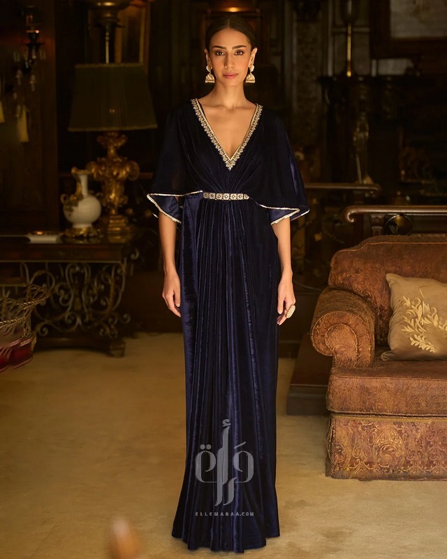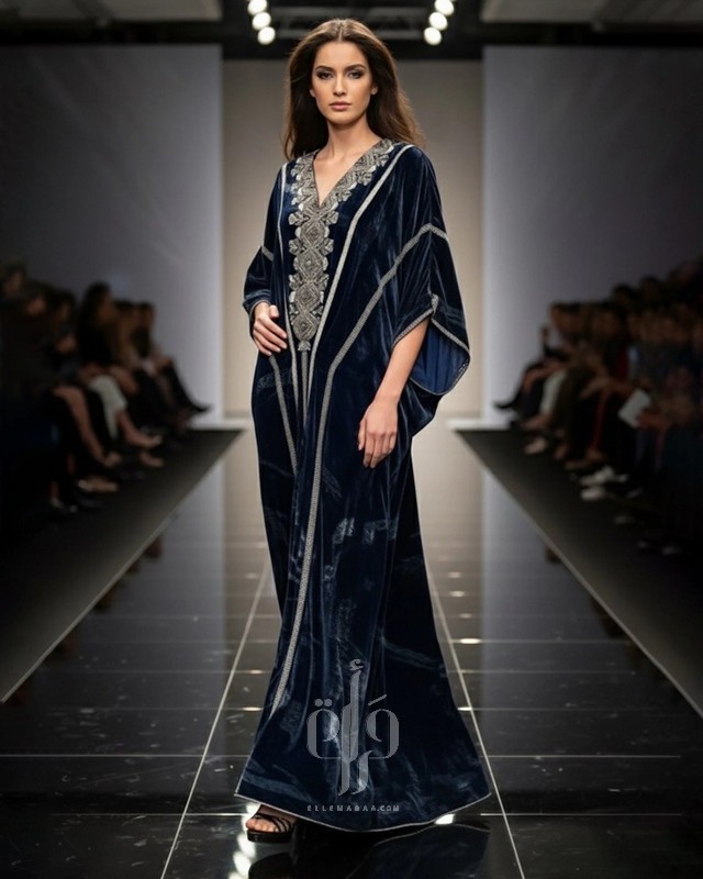 للمناسبات الرمضانية والسهرات الخاصة، يعود القفطان المخملي بقوة هذا الموسم، حيث يظهر بألوان فاخرة مثل الأخضر الزمردي والبنفسجي العميق والعنابي. ويعد هذا التصميم مثالياً لإطلالات العيد أو العزائم الرمضانية الراقية.