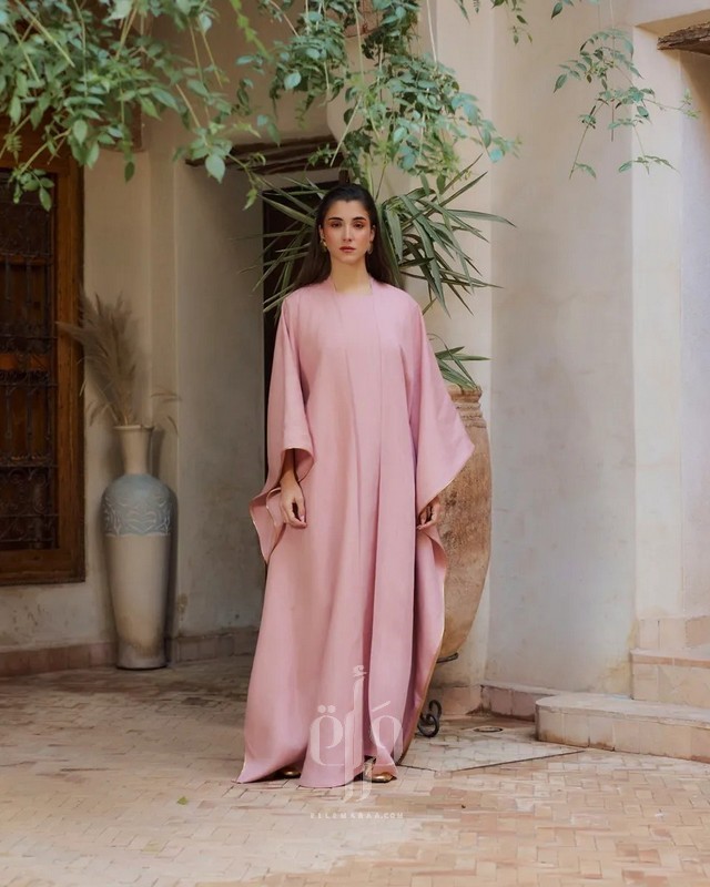 من الصيحات اللافتة أيضاً العباءة الهجينة التي تشبه المعطف الطويل، حيث تُرتدى فوق فستان بسيط أو طقم أنيق. ويمكن تنسيقها مع حزام لإبراز القوام أو ارتداؤها بشكل مفتوح لإطلالة أكثر عصرية.