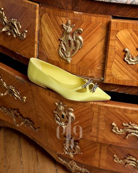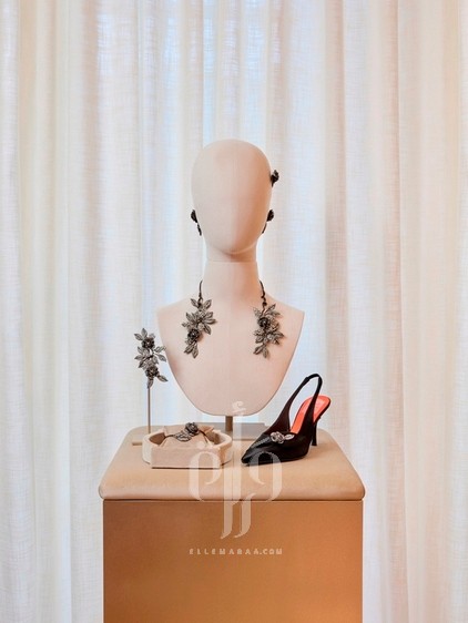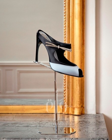 • خط مطرّز مستوحى من أحذية Monsieur Vivier في خمسينيات القرن الماضي، مع تطريزات كريستالية وضفائر زخرفية.