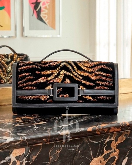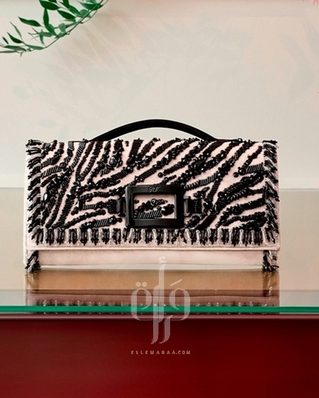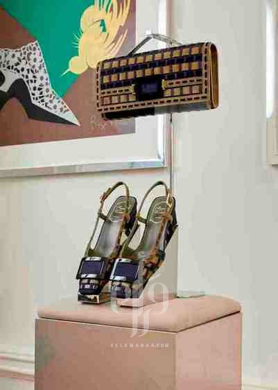 • Belle Vivier: يُعاد تقديم حذاء slingback المصنوع من الجلد المنسوج والسويد، مع حقيبة clutch متناسقة، مزودة بمشبك هندسي دقيق.